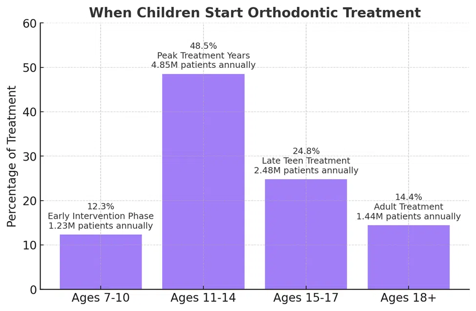 Orthodontic visits now represent 14.5% of all pediatric dental procedures, making them the third-largest treatment category in children’s dentistry. This growth reflects what Beverly Hills parents already know: orthodontic care is essential healthcare, not just cosmetic treatment.